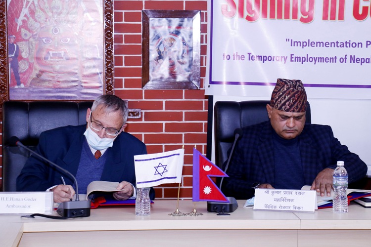नेपाल र इजरायलबीच गत असोजमा भएको ‘इजरायलको विशिष्ट श्रम बजारमा नेपाली कामदारको अस्थायी रोजगारीसम्बन्धी सम्झौता’ कार्यान्वयन गर्न दुई देशका अधिकारीबीच ‘इम्प्लिमेन्टेसन प्रोटोकल’ हस्ताक्षर भएको छ ।