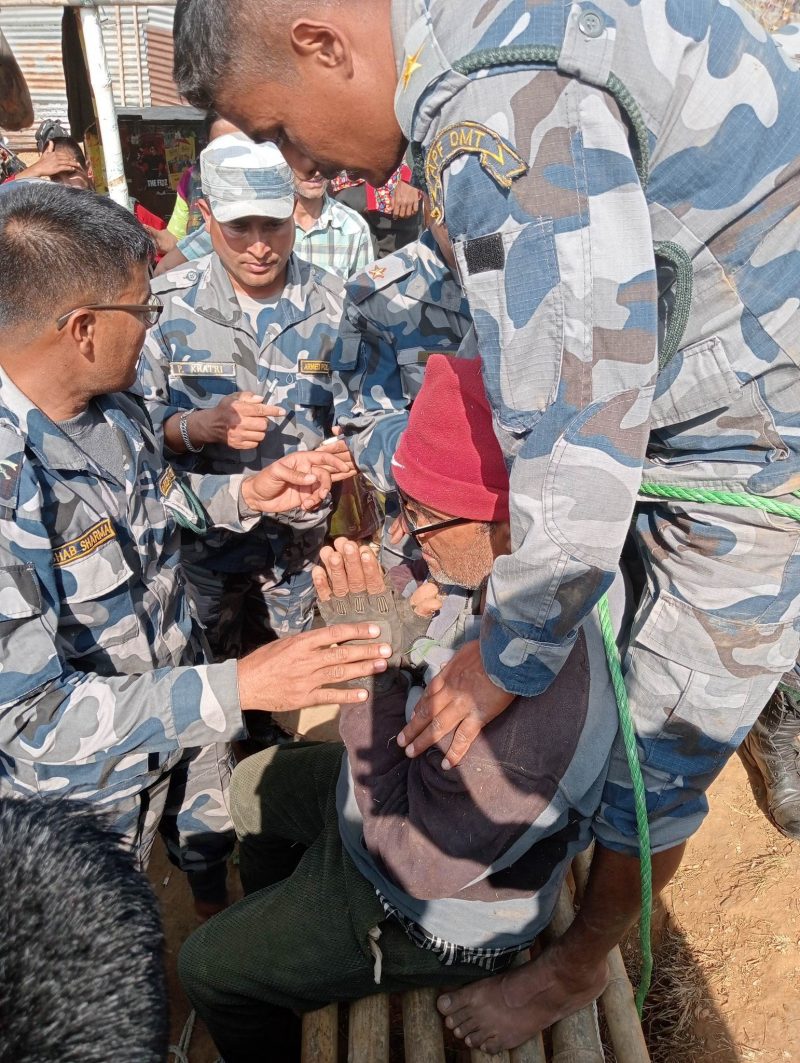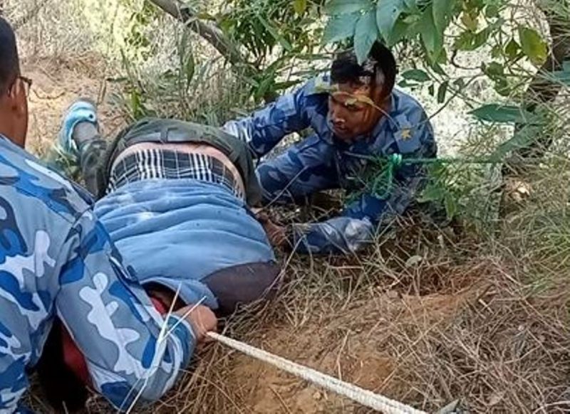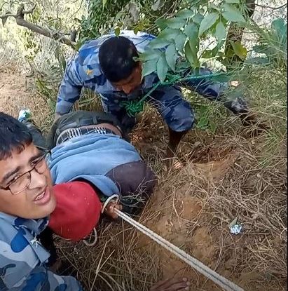 सो बारे स्थानीयले सशस्त्र प्रहरी बल नेपाल नम्बर २५ गण चण्डिका पर्वतलाई जानकारी गराएपछि उक्त गणबाट सशस्त्र प्रहरी निरीक्षक केशव शर्माको कमाण्डको टोलीले उनलाई रोप रेस्क्यु विधि अपनाई करीव १५ मिटर तलबाट सशुकल उद्वार गरेको हो ।