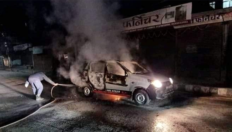 यात्रु बनेका बन्दकर्ताले चालक कुम्भनारायणलाई भित्रै राखेर यसरी लगाए आगो