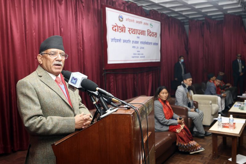 आदिवासी जनजाति आयोगको दोस्रो स्थापना दिवस तथा ‘आदिवासी जनजाति अध्ययन’ सार्वजनिकीकरण कार्यक्रमका अवसरमा आयोजित कार्यक्रममा प्रधानमन्त्री दाहालले सबै वर्ग, जाति र समुदायलाई समान अवसर तथा प्रतिनिधित्व गराएर मात्र आन्तरिक राष्ट्रियता बलियो बनाउन सकिने बताउनुभयो ।