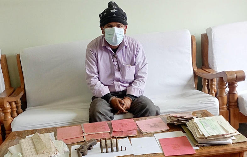 पेस्तोल, बन्दुकका गोली, सहीछाप गरिएका खाली कागज, लालपूर्जासहित मिटरव्याजी पक्राउ