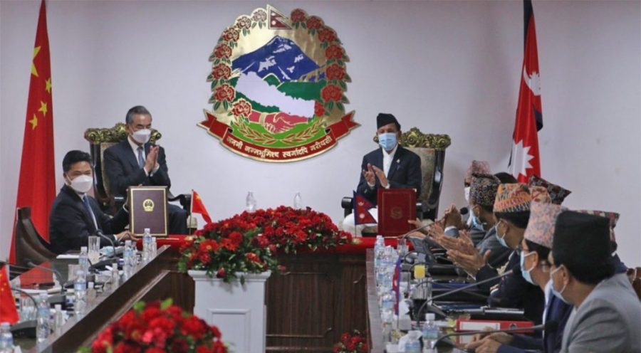 शनिबार चीनका स्टेट काउन्सिलर तथा विदेशमन्त्री वाङ यीको नेपाल भ्रमणका क्रममा परराष्ट्रमन्त्री नारायण खड्का र दुई देशका प्रतिनिधिमण्डलबीच भेटवार्तापछि नेपाल र चीन सरकारबीच नौ वटा समझदारी पत्रमा हस्ताक्षर भएको हो ।