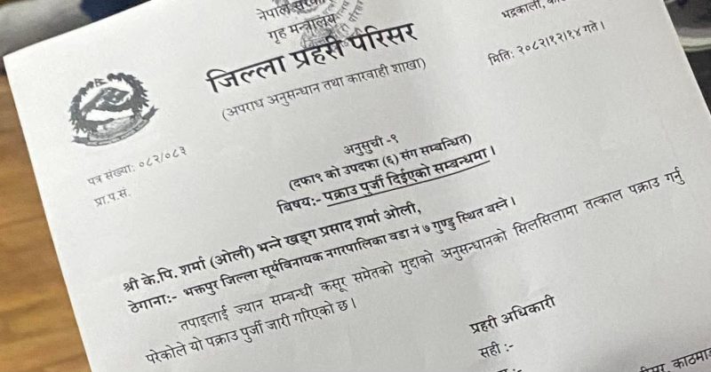 यस्तो छ ओलीलाई लेखिएको पक्राउ पुर्जी