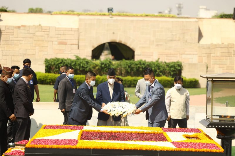 प्रधानमन्त्रीका साथमा प्रथम महिला डा आरजु राणा देउवा, परराष्ट्रमन्त्री डा नारायण खड्का, ऊर्जा, जलस्रोत तथा सिँचाइमन्त्री पम्फा भुसाल, स्वास्थ्य तथा जनसङ्ख्यामन्त्री विरोध खतिवडा, कृषि तथा पशुपन्छी विकासमन्त्री महेन्द्रराय यादव, मुख्यसचिव शङ्करदास बैरागी, प्रधानमन्त्रीका प्रमुख स्वकीय सचिव भानबहादुर देउवा, परराष्ट्र सचिव भरतराज पौड्यालगायत महात्मागान्धीप्रति श्रद्धाञ्जलि अर्पण गर्न राजघाट पुग्नुभएको थियो ।