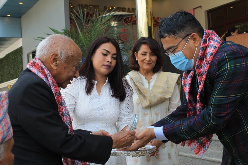 वरिष्ठ स्नायु चिकित्सक प्रा डा दिनेशनाथ गङगोंल र उपेन्द्र देवकोटा मेमोरियल नेशनल इन्ष्टिच्युट अफ न्यूरोलोजिकल एण्ड एलाइड साइन्सका कार्यकारी अध्यक्ष प्रा डा मधु दीक्षित देवकोटाले संयुक्तरूपमा ती चिकित्सकहरूलाई दोसल्ला ओढाइ सम्मान गर्नुभयो ।