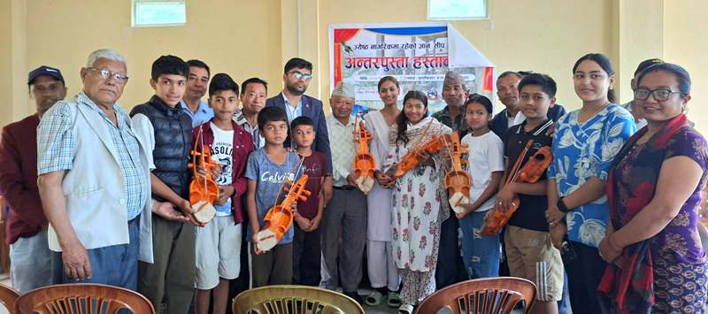 बिदाको समय सदुपयोग गर्न बालबालिकालाई सारङ्गी सिकाइँदै