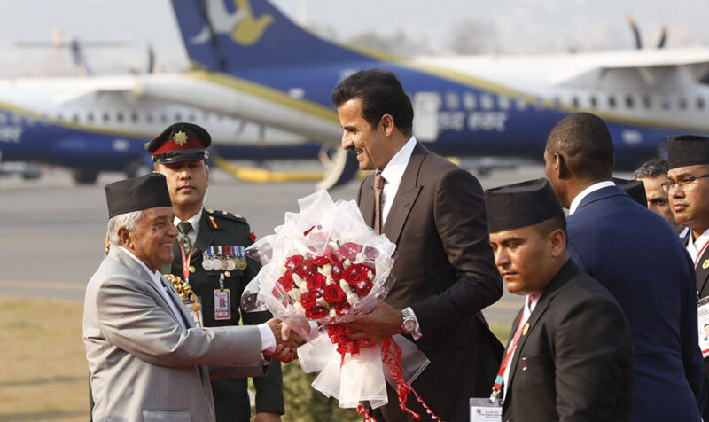 कतारका अमिर नेपालमा, राष्ट्रपति पौडेलबाट स्वागत
