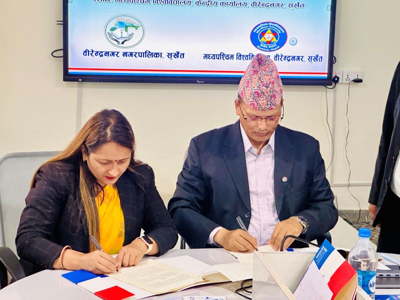 मध्यपश्चिम विश्वविद्यालय र वीरेन्द्रनगर नगरपालिकाबीच छात्रवृत्तिका लागि अक्षयकोष स्थापनामा सम्झौता
