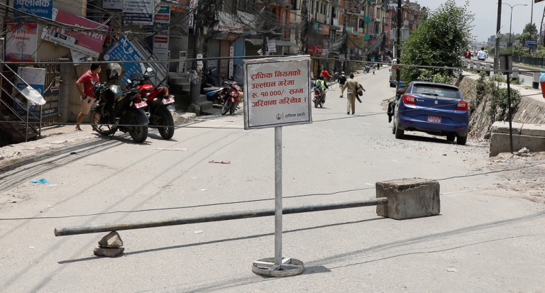 सिल गरिएको क्षेत्रमा यातायात चल्न बन्द गरिएको छ । प्रहरीले सबैजसो सडकमा डोरी टाँगेर र बार राखेर बन्द गराएको छ ।