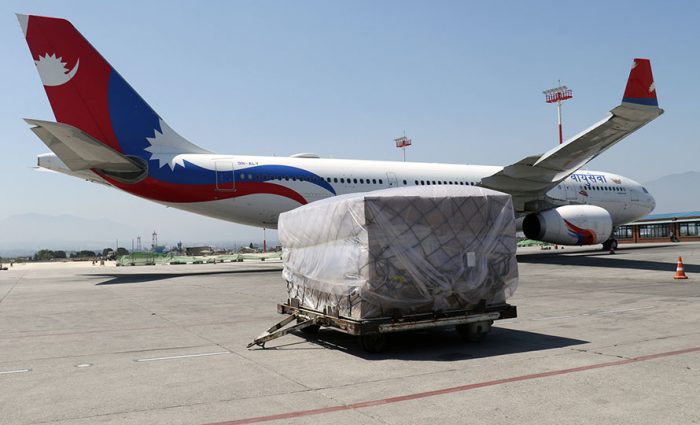 नेपाली सेनाले ग्वाङ्जाओबाट ल्यायो १८.८ टन स्वास्थ्य सामग्री