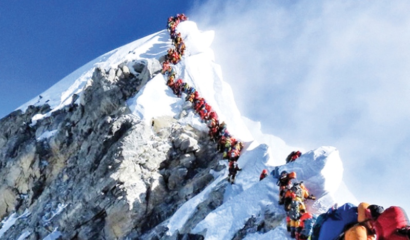 सगरमाथाको चुचुरोमा आरोहीको भीड
