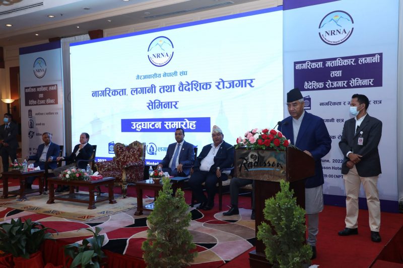 सङ्घले बिहिबार आयोजना गरेको ‘नागरिकता, मताधिकार, लगानी तथा वैदेशिक रोजगार’ विषयक सेमिनारको उद्घाटन गर्दै उहाँले नागरिकताको विषय सबै सरोकारवालासँग छलफल गरेर टुङ्गो लगाइने बताउनुभयो ।
