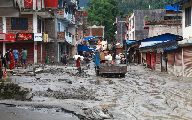 असारको पहिलो साता इन्द्रावती नदीमा आएको बाढीले तहसनहस भएको सिन्धुपाल्चोकको हेलम्बु, चनौटेका स्थानीय र व्यवसायी बाढीले पुरिएको आफ्नो सामान निकालेर सुरक्षित स्थानतर्फ जान थालेका छन् ।