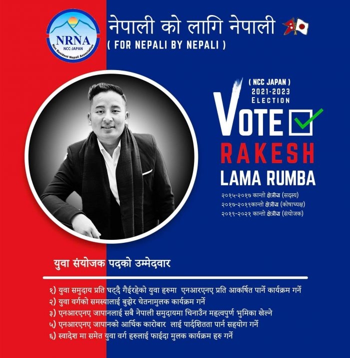 एनआरएनए जापान युवा संयोजकमा राकेश रूम्वाको उम्मेद्वारी घोषणा
