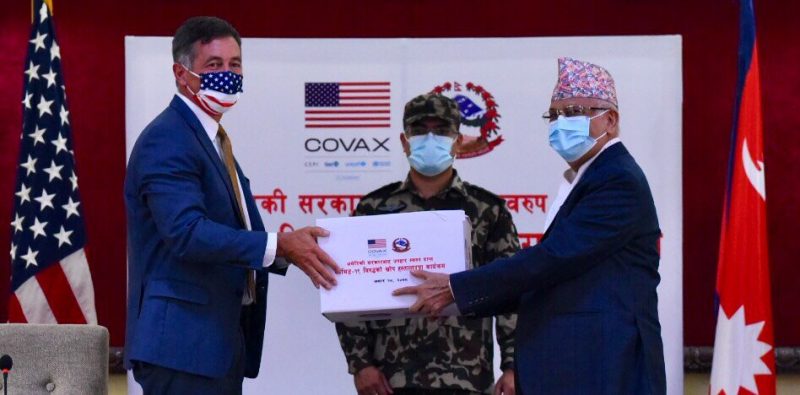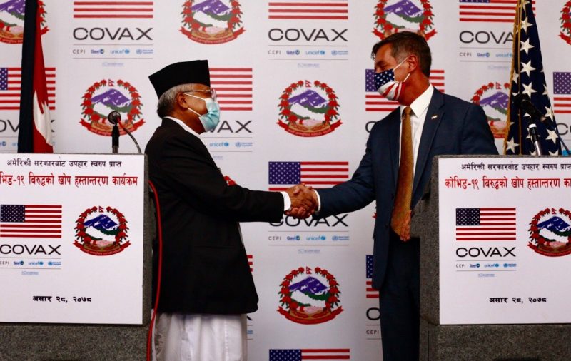 अमेरिकी सरकारले कोभिड–१९ विरुद्ध १५ लाख मात्रा खोप सहयोगस्वरुप आज नेपाललाई हस्तान्तरण गरेको छ । प्रधानमन्त्री निवास बालुवाटारमा सोमबार आयोजित कार्यक्रममा प्रधानमन्त्री केपी शर्मा ओलीलाई नेपालका लागि अमेरिकी राजदूत र्याण्डी बेरीले जोन्सन एण्ड जोन्सन खोप हस्तान्तरण गर्नुभयो ।