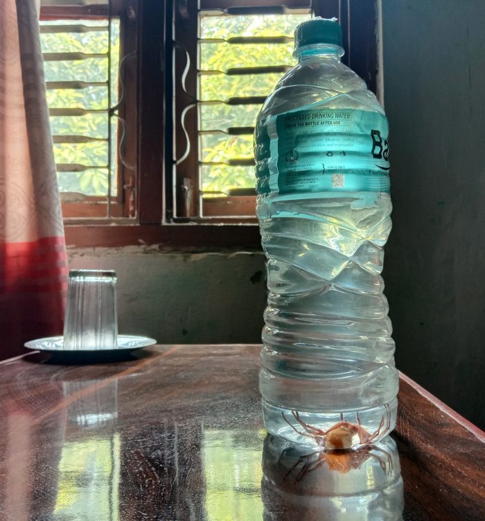 सिल प्याक पानीको बोतलमा माकुरो