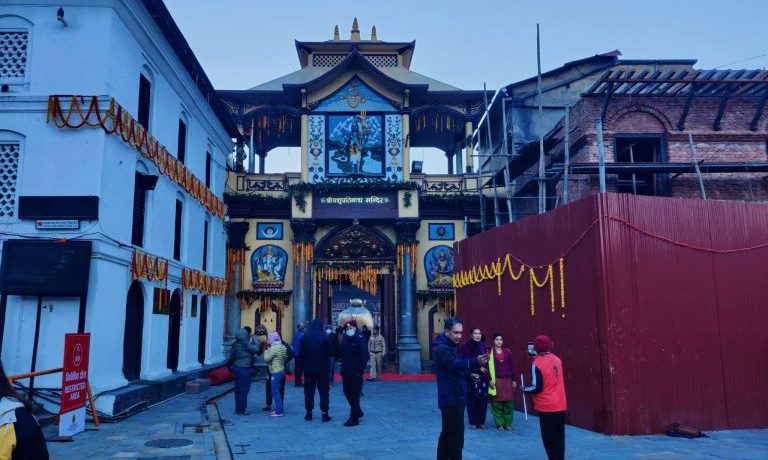 बाहिर भक्तजनको चहलपहल पशुपतिनाथ मूल मन्दिर क्षेत्र सुनसान