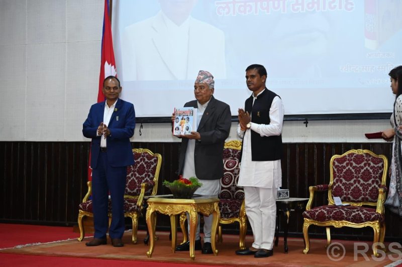 रविन्द्र शाह स्मृति प्रतिष्ठानद्वारा राजेश्वर नेपालीको ८३औँ जन्मजयन्तीका अवसरमा बिहीबार यहाँ आयोजित ‘राजेश्वर नेपाली अभिनन्दन ग्रन्थ लोकार्पण’ समारोहलाई सम्बोधन गर्दै राष्ट्रपति पौडेलले लोकतन्त्रलाई आधुनिक समयको शासन प्रणालीको उच्चतम रुप मात्र नभई लोकतन्त्रका आदर्श, मूल्यमान्यतालाई हाम्रो आचरण तथा जीवनशैलीकारुपमा आत्मसाथ गर्दै मुलुक बनाउने अवसरमा रुपान्तरण गर्नुपर्ने बताउनुभयो ।