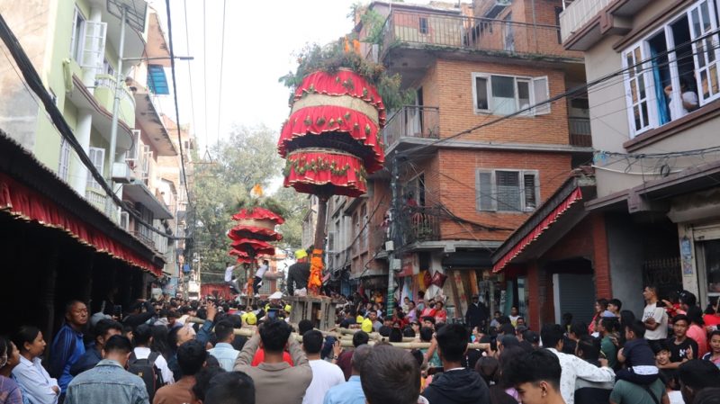 काठमाडौँ महानगरपालिका–५ स्थित हाडिगाउँमा शुक्रबार ब्रह्मा, विष्णु र महेश्वर भगवानको खट घुमाइने हाँडीगाउँको जात्रा । यहाँ दसैँको कोजाग्रत पूर्णिमाको भोलिपल्ट काठमाडौँको हाँडीगाउँमा यो जात्रा मनाइँदै आएको छ । हाँडीगाउँको जात्राले छुट्टै मौलिकता र विशेष पहिचान बोकेको छ । काहीँँ नभएको जात्रा हाँडीगाउँमा भन्ने पनि गरिन्छ।तस्बिरः हरिराम भेटुवाल/रासस