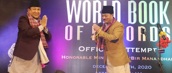 गीत गाएर विश्व रेकर्ड कायम गर्ने प्रयासमा राज्यमन्त्री मानन्धर